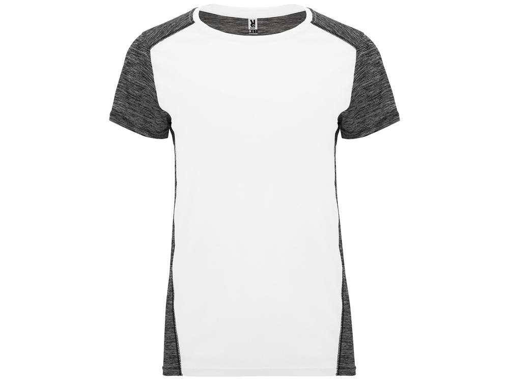Футболка с коротким рукавом из технологического полотна. Круглый вырез горловины. Комбинация двух полиэстеровых полотен. Основное полотно на полочке со структурой, дополнительное полотно на спинке, рукавах и плечах с меланжевым эффектом. Задняя часть немного длиннее. Легко сохнущее дышащее полотно. В ассортименте так же присутствует аналогичная мужская и детская модели Zolder