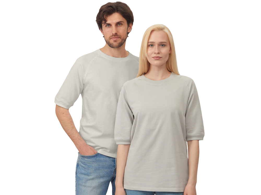 Футболка выполнена из хлопкового френч терри с петельками на изнаночной стороне. Горловина обработана рибом 2х2 и дополнительно усилена тесьмой-елочкой с внутренней стороны спинки и дополнена кокеткой по спинке для нанесения логотипа клиента. Рукав реглан продублирован рибом по низу. Разрезы в боковых швах. Гладкая поверхность полотна позволяет идеально нанести изображение. Футболка комфортного силуэта. - кокетка на внутренней стороне спинки для нанесения - комфортный силуэт - мягкое и качественное полотно френч терри Трафаретная печать (1 цвет (цветные изделия)) на данный товар осуществляется бесплатно. Оплачивается только настройка оборудования в размере 9100 рублей на весь тираж.