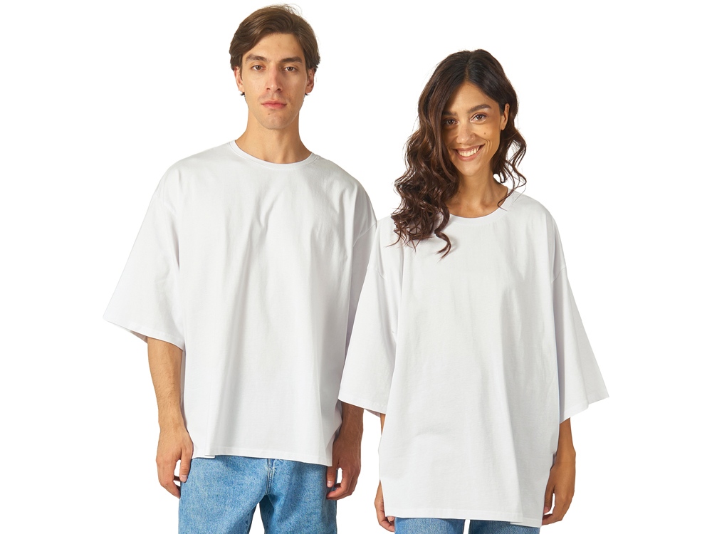 Футболка унисекс расширенного силуэта со спущенным плечом и удлиненной линией рукава. Футболка выполнена из плотного джерси 180гр. Горловина спинки дополнительно укреплена тесьмой из основной ткани. Скрытый лейбл позволит сделать акцент на брендировании клиента. Расслабленная посадка модели позволяет чувствовать себя комфортно и оставаться на волне трендов. Трафаретная печать (1 цвет (белые изделия)) на данный товар осуществляется бесплатно. Оплачивается только настройка оборудования в размере 8200 рублей на весь тираж.