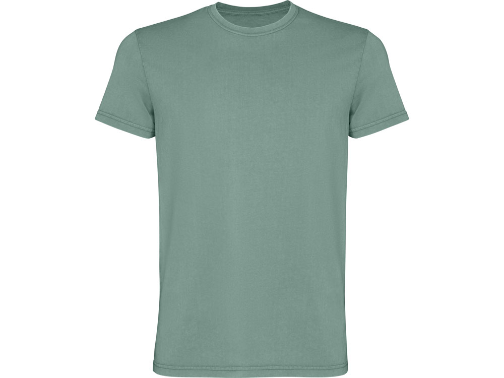 Мужская футболка с коротким рукавом из 100% хлопка с аксидной стиркой. Круглый вырез горловины из риба 1х1. Отстрочка в тон по горловине.