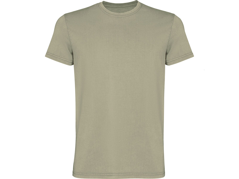 Мужская футболка с коротким рукавом из 100% хлопка с аксидной стиркой. Круглый вырез горловины из риба 1х1. Отстрочка в тон по горловине.