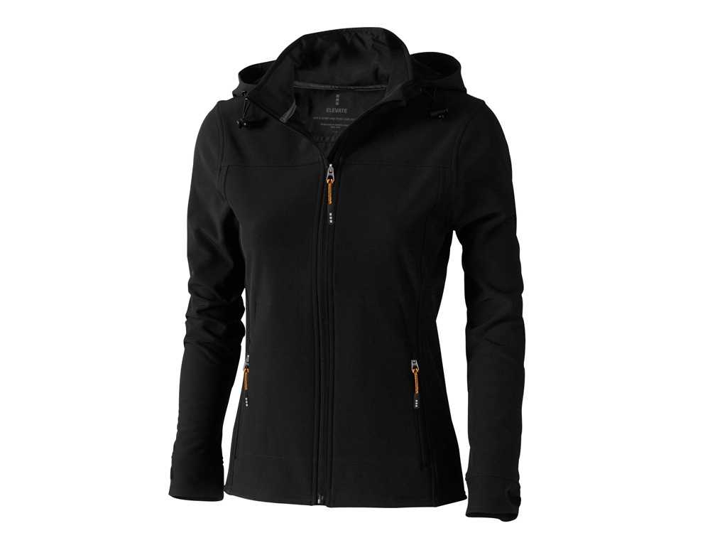 Женская куртка софтшел Langley. Стандартный покрой. Отстегивающийся капюшон на шнурках со стопперами. Обратная молния по центру и на карманах для рук. Регулируемые манжеты на липучках. Отражающий лого сзади. Водонепроницаемый 5000 мм. Дышащий 3000 мм. Ткань эластична в четырех направлениях. Ветронепроницаемая. Ремешки на собачку (второй комплект в цвете антрацит). Ткань из 90% полиэстера и 10% эластана, склеенного со 100% полиэстеровым микрофлисом. 300 г/м². Термотрансфер (1 цвет (цветные изделия)) на данный товар осуществляется бесплатно. Оплачивается только настройка оборудования в размере 10000 рублей на весь тираж.