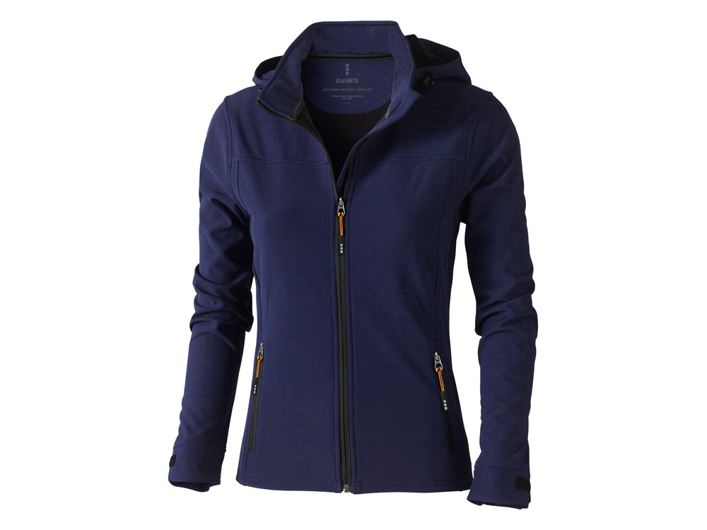 Женская куртка софтшел Langley. Стандартный покрой. Отстегивающийся капюшон на шнурках со стопперами. Обратная молния по центру и на карманах для рук. Регулируемые манжеты на липучках. Отражающий лого сзади. Водонепроницаемый 5000 мм. Дышащий 3000 мм. Ткань эластична в четырех направлениях. Ветронепроницаемая. Ремешки на собачку (второй комплект в цвете антрацит). Ткань из 90% полиэстера и 10% эластана, склеенного со 100% полиэстеровым микрофлисом. 300 г/м². Термотрансфер (1 цвет (цветные изделия)) на данный товар осуществляется бесплатно. Оплачивается только настройка оборудования в размере 10000 рублей на весь тираж.
