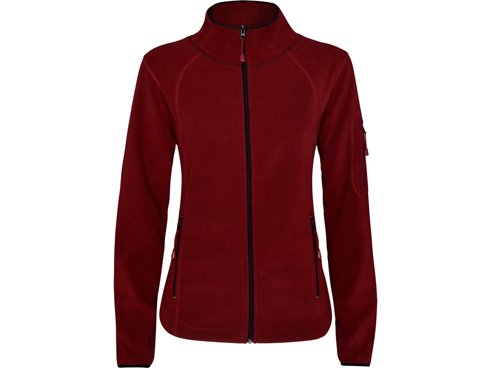 Куртка из микрофлиса с высоким воротом. Контрастная центральная молния, боковые карманы на молнии, декоративная молния на левом рукаве, отделка резинкой по краю рукавов. Налокотники из основного материала.
