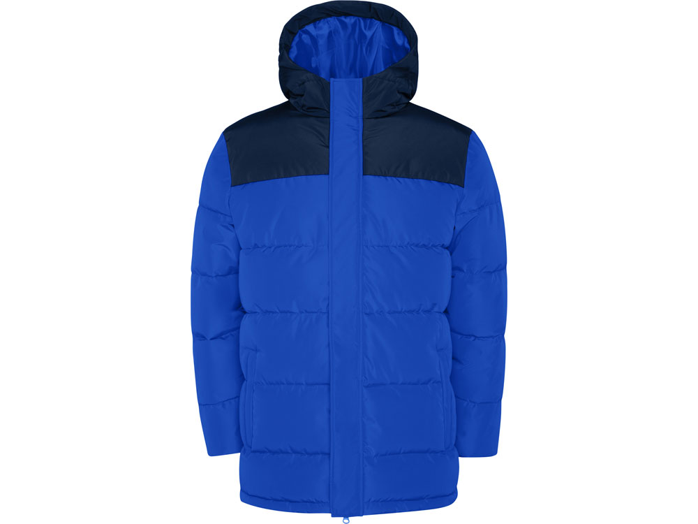 Утепленная куртка с капюшоном · передняя молния закрывается планкой · защита для подбородка · два боковых кармана на молнии · эластичный манжеты · специальный доступ для нанесения на спинке