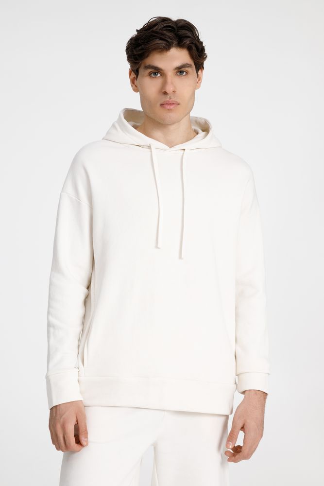 Худи унисекс свободной посадки со спущенным плечом.- Манжеты и низ изделия из основного полотна