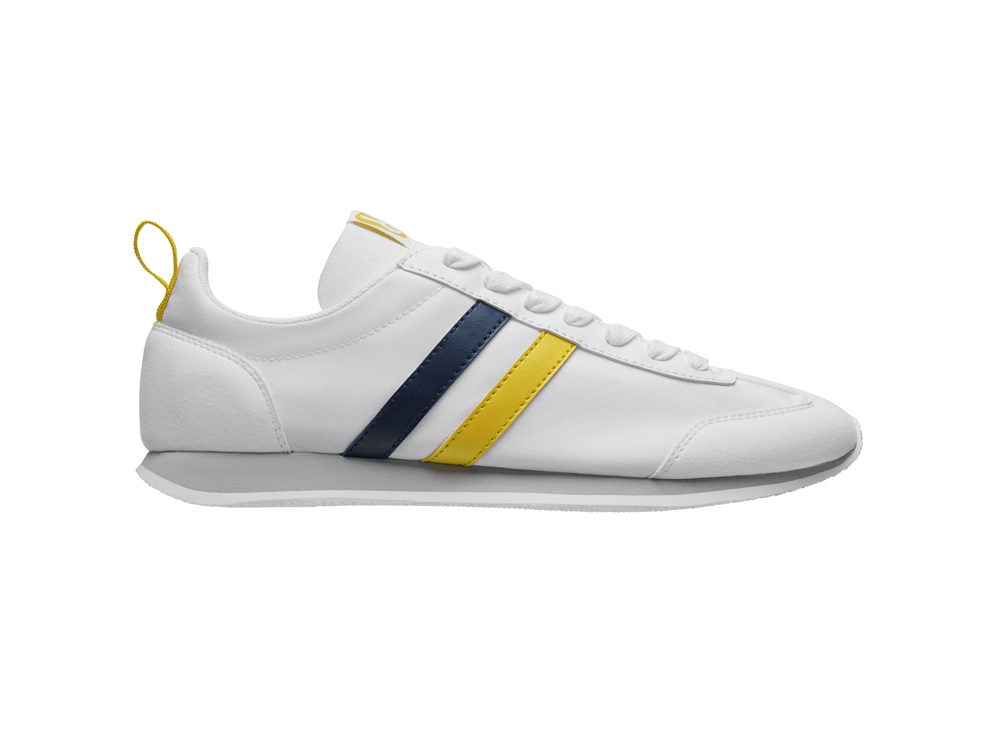 Повседневные кроссовки в стиле ретро с узким носком и резиновой подошвой. Фиксация на ноге с помощью шнурков, декоративные боковые полоски.