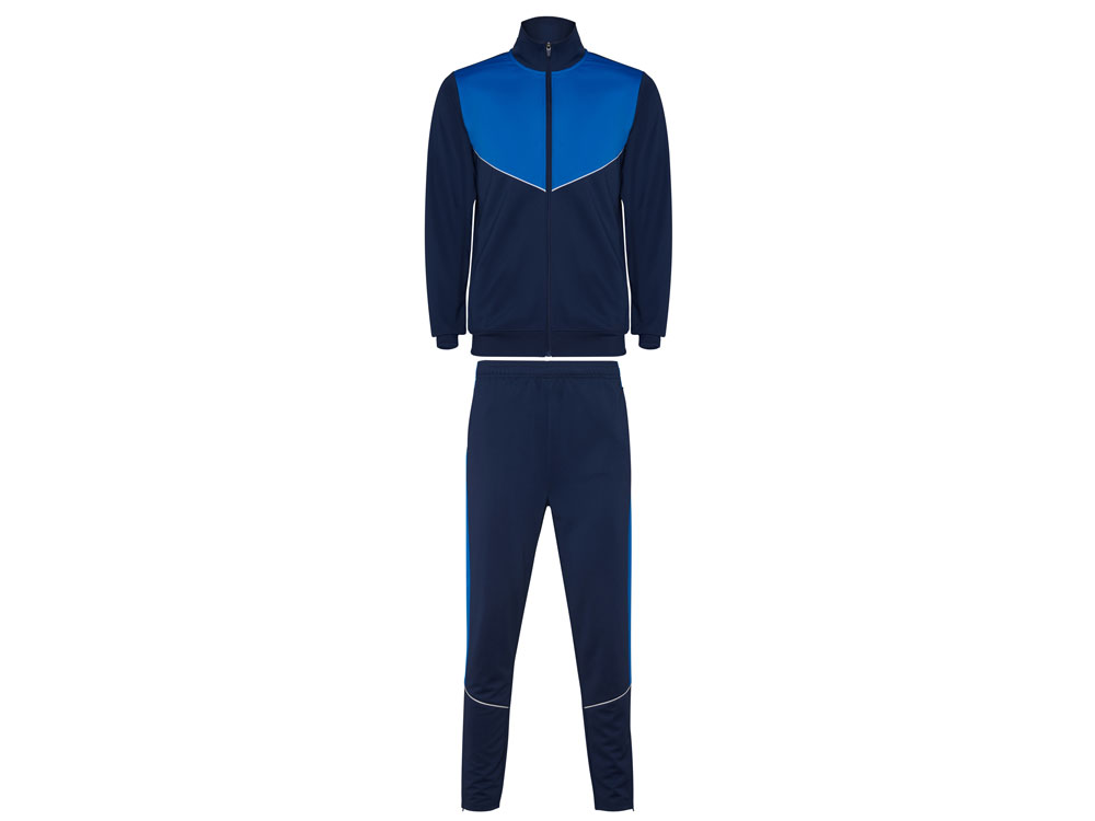 Спортивный костюм из облегченного и эластичного материала. - куртка с контрастными вставками и кантами - высокий воротник с контрастами строчками - центральная молния - боковые карманы - риб 2х2 на манжетах и низу - контрастные боковые части с кантами - молнии по низу - брюки на эластичном поясе со шнурками
