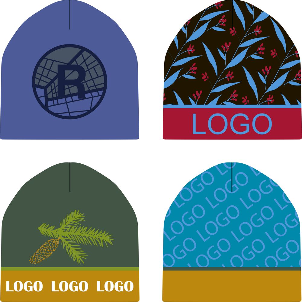 Шапка с вывязанным логотипом и индивидуальным рисунком в фирменной цветовой гамме.
