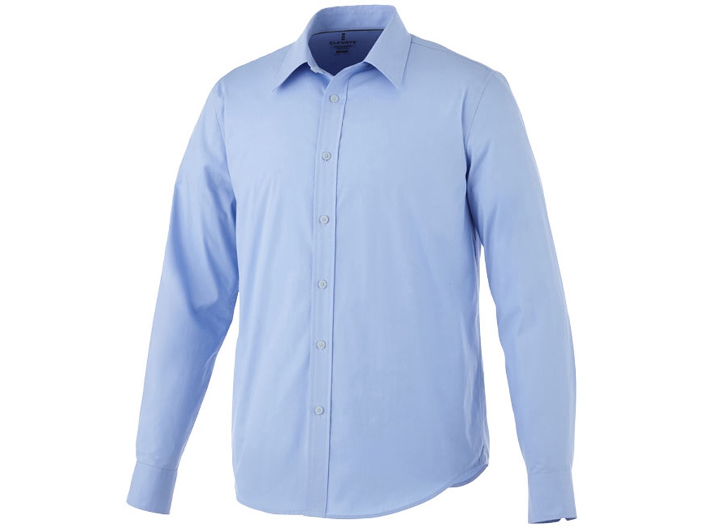 Рубашка с длинными рукавами Hamell. Скрытая пуговица под воротником. Стрейч-ткань. Регулируемый манжет на одной пуговице. Атласная окантовка внутренней части горловины. Гравированные пуговицы в цвет изделия. Комфортный ярлык-трансфер на изделии. Поплин из 96% хлопка и 4% эластана. 118 г/м². Трафаретная печать (1 цвет (цветные изделия)) на данный товар осуществляется бесплатно. Оплачивается только настройка оборудования в размере 9100 рублей на весь тираж.