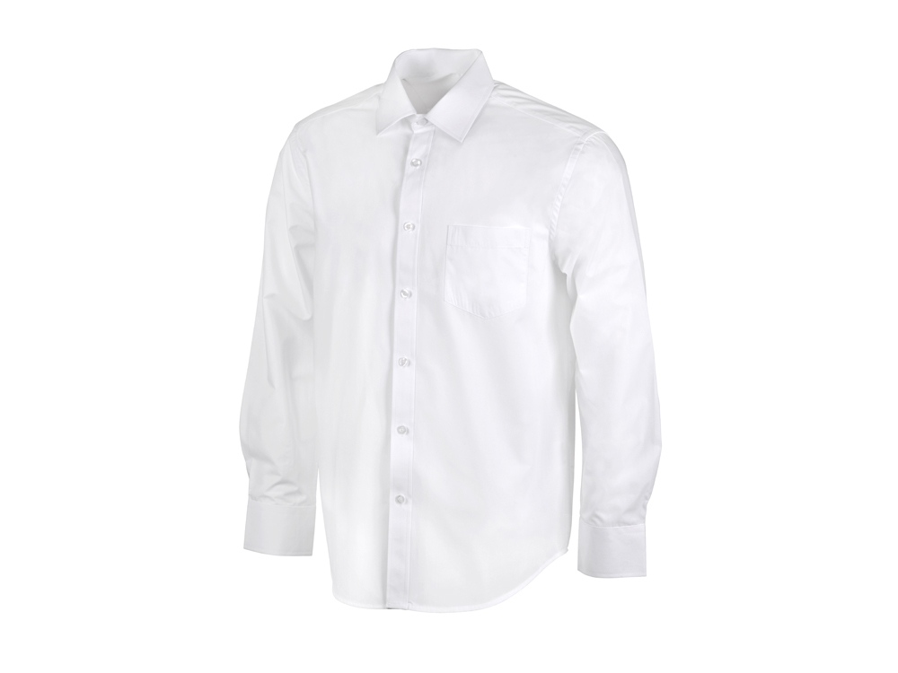 Рубашка мужская с длинным рукавом на семи пуговицах. Накладной карман на груди слева, на спинке складки из-под кокетки, манжеты с двумя пуговицами и пуговица по планке рукава. Трафаретная печать (1 цвет (белые изделия)) на данный товар осуществляется бесплатно. Оплачивается только настройка оборудования в размере 7300 рублей на весь тираж.