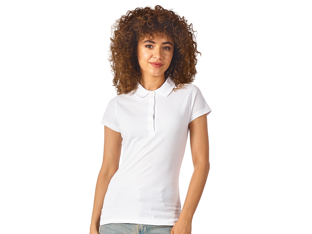 Женская рубашка-поло First. Воротник 1х1. Обшивка внутри воротника. Мужская и детская модели с 2 пуговицами, женская - с 4 пуговицами. Пуговицы с гравировкой в тон. Пике, 100% хлопок. 160 г/м2. Трафаретная печать (1 цвет (белые изделия)) на данный товар осуществляется бесплатно. Оплачивается только настройка оборудования в размере 7300 рублей на весь тираж.
