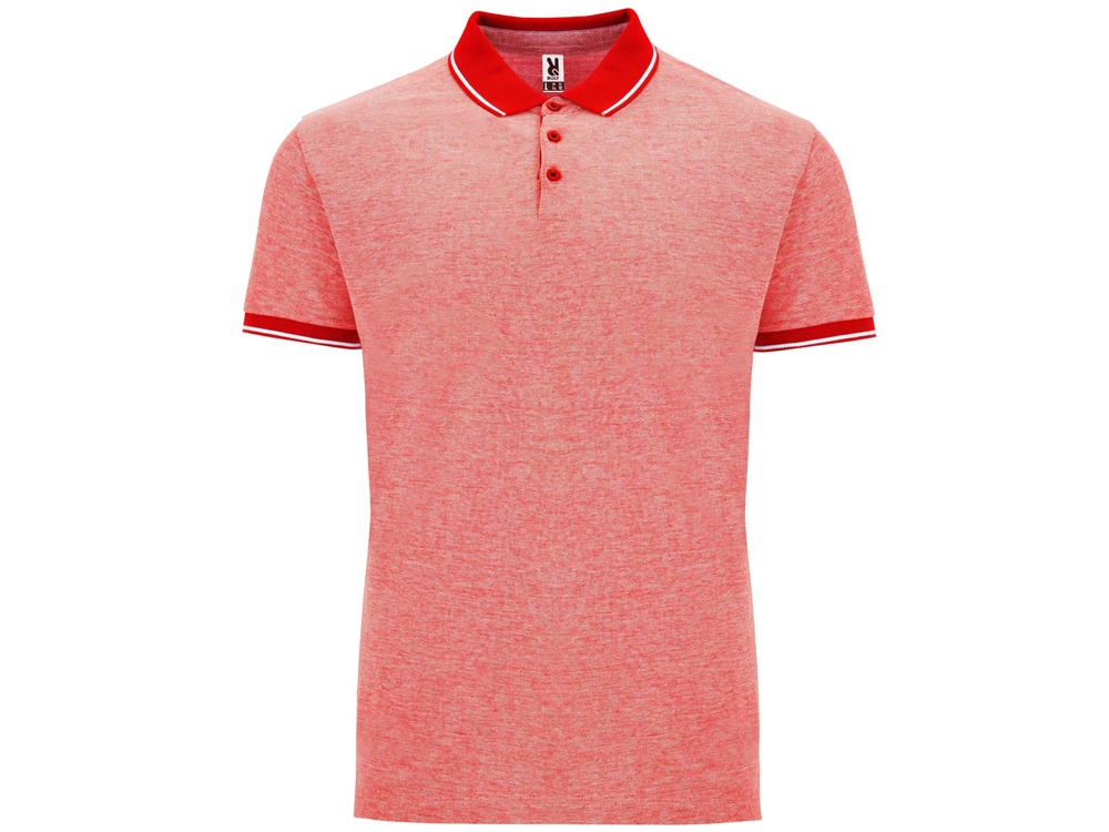 Рубашка поло с коротким рукавом. Манжеты и воротник из однотонного риба 1х1 с контрастными полосками. Планка на 3 пуговицы. Низ с боковыми разрезами, отделанными тесьмой. Спинка немного длиннее полочки. Полотно с меланжевым эффектом.