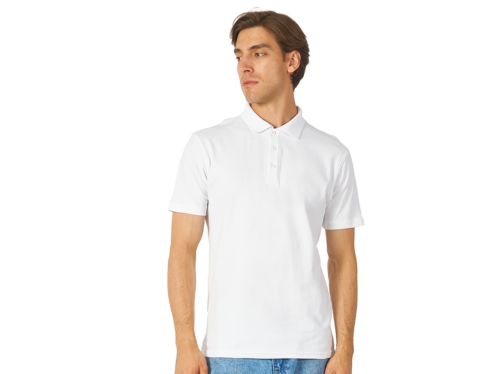 Поло из плотного пике 200гр, планка с застежкой на 3 пуговицы в тон с гравировкой бренда. Горловина внутри обработана тесьмой из основного полотна, разрезы в боковых швах. Полотно с эластаном для комфортной посадки по фигуре. Трафаретная печать (1 цвет (белые изделия)) на данный товар осуществляется бесплатно. Оплачивается только настройка оборудования в размере 7300 рублей на весь тираж.