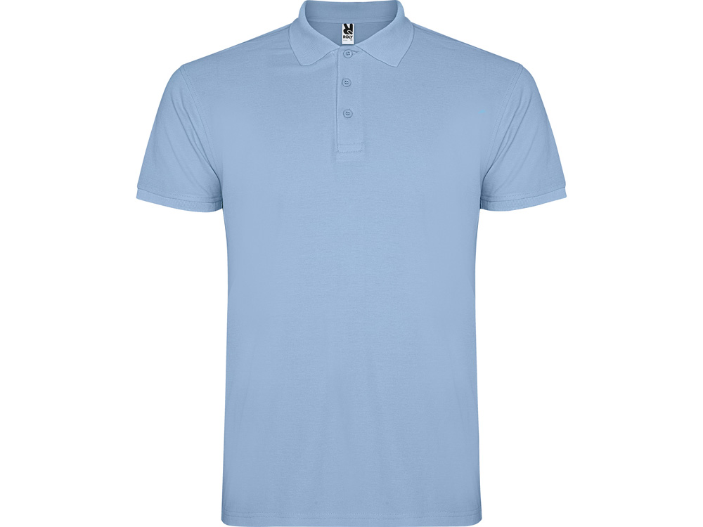 Поло с коротким рукавом, воротник и манжеты из риба 1х1, отделка горловины внутри тесьмой. Планка застегивается на 3 пуговицы. Разрезы в боковых швах. В ассортименте также представлены аналогичная женская модель Star.