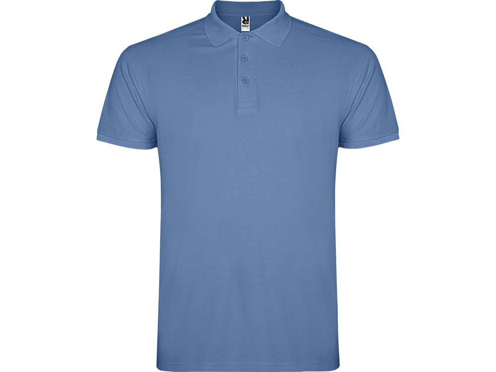 Поло с коротким рукавом, воротник и манжеты из риба 1х1, отделка горловины внутри тесьмой. Планка застегивается на 3 пуговицы. Разрезы в боковых швах. В ассортименте также представлены аналогичная женская модель Star.
