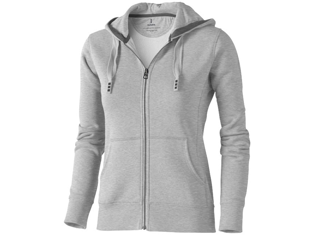 Женский свитер Arora с капюшоном и застежкой-молнией на всю длину. Стандартный покрой. Резинка 2х2 на боковых вставках, поясе и манжетах. Карман кенгуру. Мужская и женская модели с завязками на капюшоне. Подкладка внутри капюшона. Атласная лента внутри горловины. Принт лого сзади в тон изделия. Серебристые люверсы с лого. Ворсистый внутри для мягкости, тепла и комфорта. Трикотаж: 82% хлопок, 10% вискоза и 8% полиэстер, чесаная внутренняя сторона. 300 г/м². Трафаретная печать (1 цвет (цветные изделия)) на данный товар осуществляется бесплатно. Оплачивается только настройка оборудования в размере 10000 рублей на весь тираж.