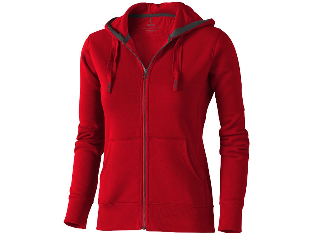 Женский свитер Arora с капюшоном и застежкой-молнией на всю длину. Стандартный покрой. Резинка 2х2 на боковых вставках, поясе и манжетах. Карман кенгуру. Мужская и женская модели с завязками на капюшоне. Подкладка внутри капюшона. Атласная лента внутри горловины. Принт лого сзади в тон изделия. Серебристые люверсы с лого. Ворсистый внутри для мягкости, тепла и комфорта. Трикотаж: 80% хлопок и 20% полиэстер, чесаная внутренняя сторона. 300 г/м². Трафаретная печать (1 цвет (цветные изделия)) на данный товар осуществляется бесплатно. Оплачивается только настройка оборудования в размере 9100 рублей на весь тираж.