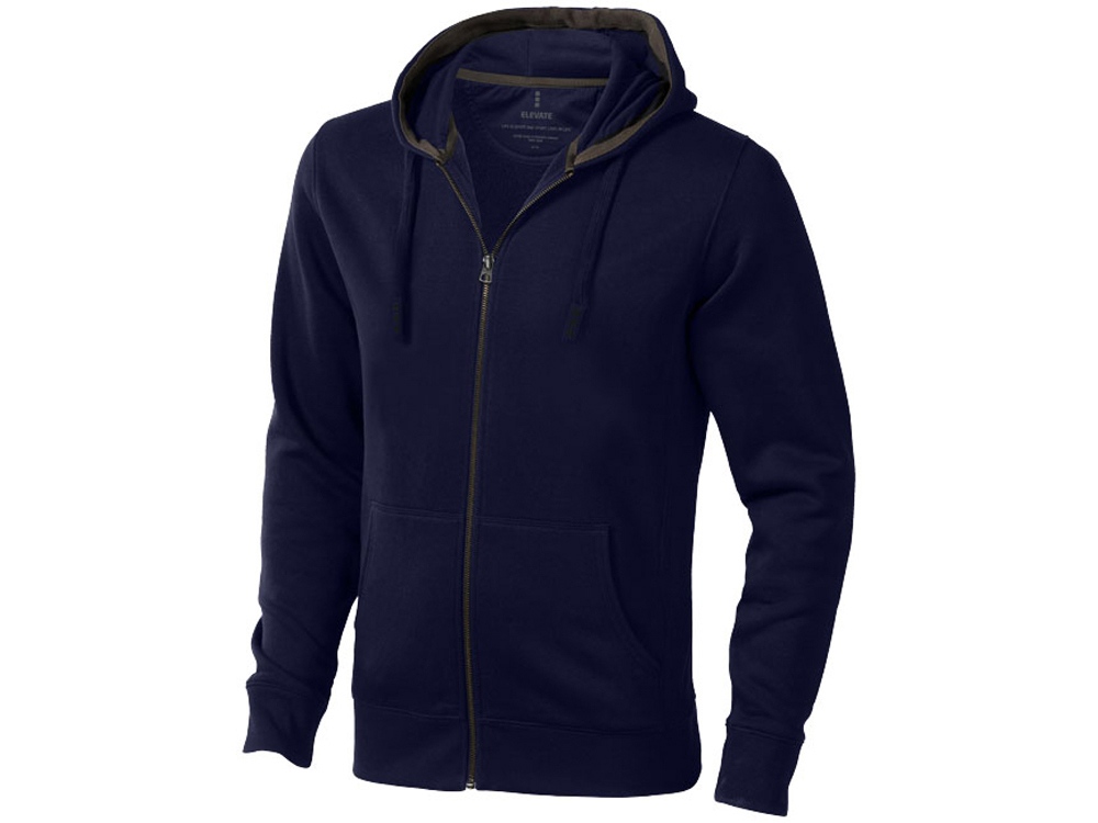 Свитер Arora с капюшоном и застежкой-молнией на всю длину. Стандартный покрой. Резинка 2х2 на боковых вставках, поясе и манжетах. Карман кенгуру. Мужская и женская модели с завязками на капюшоне. Подкладка внутри капюшона. Подкладка на полумесяце. Атласная лента внутри горловины. Принт лого сзади в тон изделия. Серебристые люверсы с лого. Трикотаж: 80% хлопок и 20% полиэстер, чесаная внутренняя сторона. 300 г/м². Трафаретная печать (1 цвет (цветные изделия)) на данный товар осуществляется бесплатно. Оплачивается только настройка оборудования в размере 9100 рублей на весь тираж.