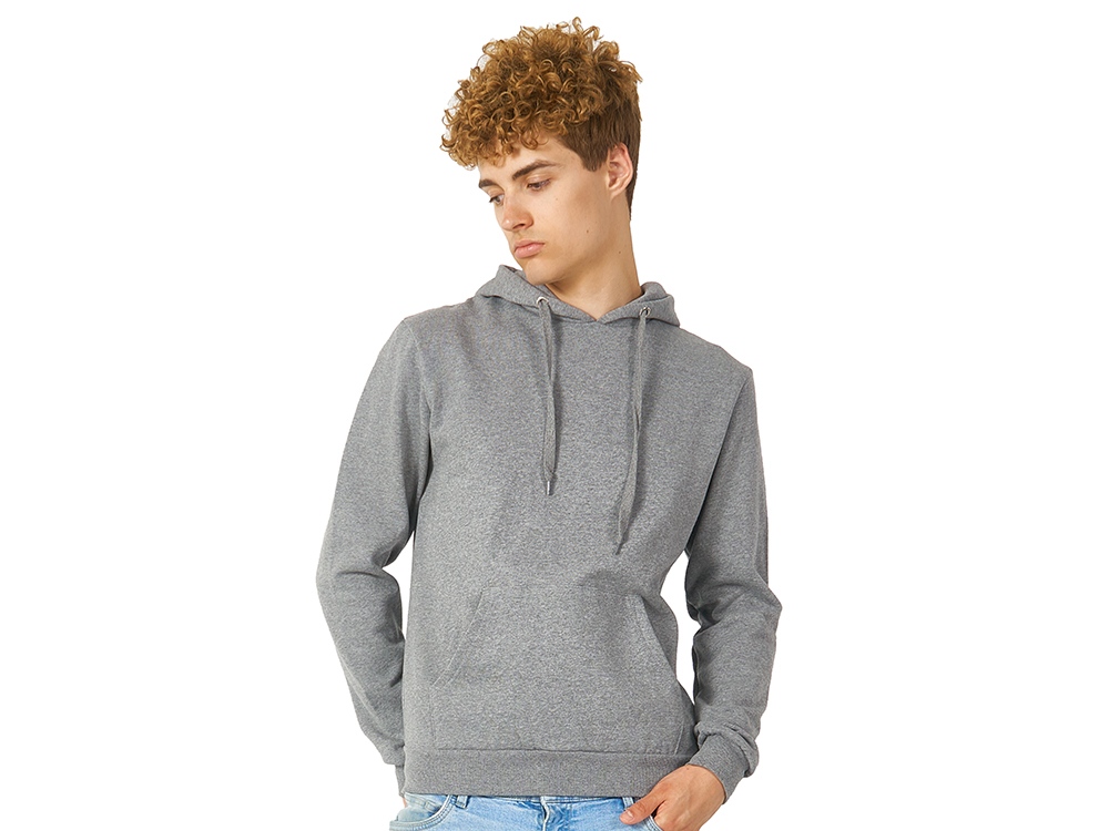 Толстовка с капюшоном (худи) из плотного футера с мягким начесом, с небольшим добавлением полиэстера. Удобная и практичная модель, подходит для прогулок по городу, активного отдыха, путешествий. • Прямой силуэт. • Капюшон с подкладкой в цвет основного материала, металлическими люверсами и плоским шнурком с наконечниками. • Удобный карман-кенгуру. • Долго сохраняет форму и не мнется благодаря небольшому содержанию полиэстера. • Гигроскопичное волокно, обладает хорошими гигиеническими свойствами. • Низ толстовки, рукавов и горловины обработаны рибом (резинкой) 1x1.