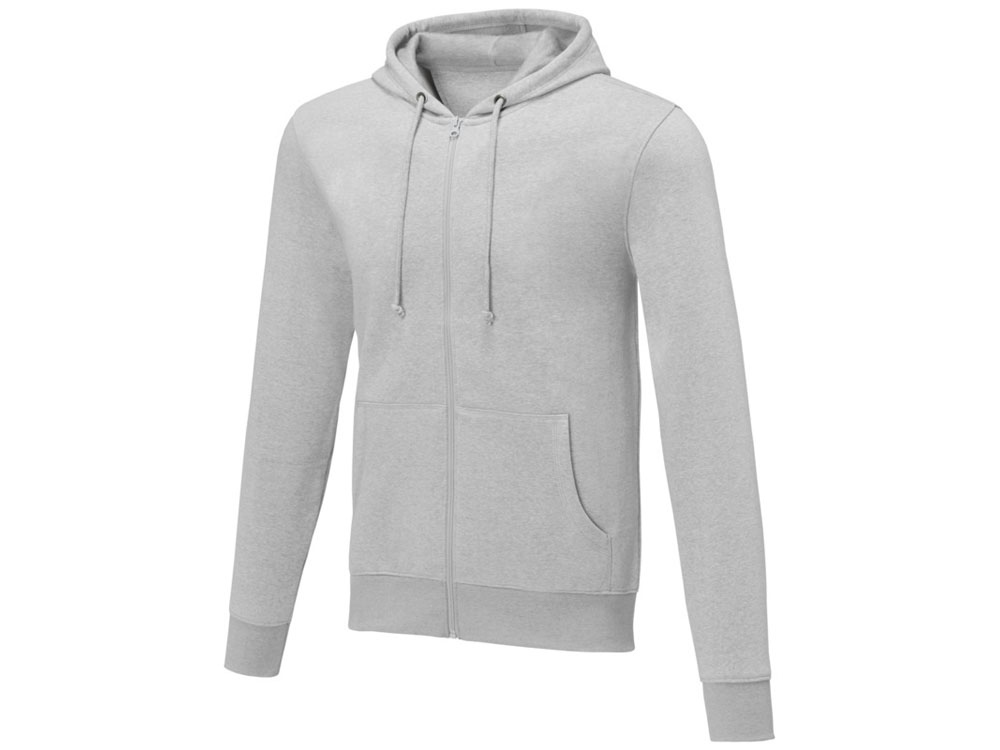 Мужская толстовка на молнии Theron. Основная этикетка, которую можно оторвать или отрезать, без неудобных пришитых ярлыков. Завязки на капюшоне. Расположенная по центру молния. Карман кенгуру. С подшивкой из гладкого трикотажа в рубчик. С манжетами из гладкого трикотажа в рубчик. Внутренняя сторона покрыта ворсом. Тесьма из основного материала по внутренней стороне горловины. Трикотаж 50% Хлопок, 50% Полиэстер, 240 g/m2. Трафаретная печать (1 цвет (цветные изделия)) на данный товар осуществляется бесплатно. Оплачивается только настройка оборудования в размере 9100 рублей на весь тираж.
