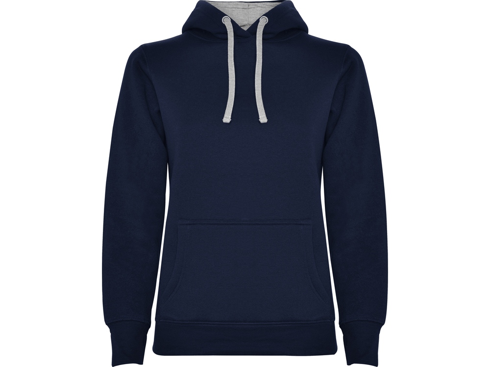 Худи с капюшоном и шнурками. Отделка горловины спинки внутри тесьмой, Риб 1х1 по низу изделия и манжетам. Карман кенгуру. На манжетах вырез под большой палец На части цветомоделей подкладка капюшона и шнурки контрастного цвета.