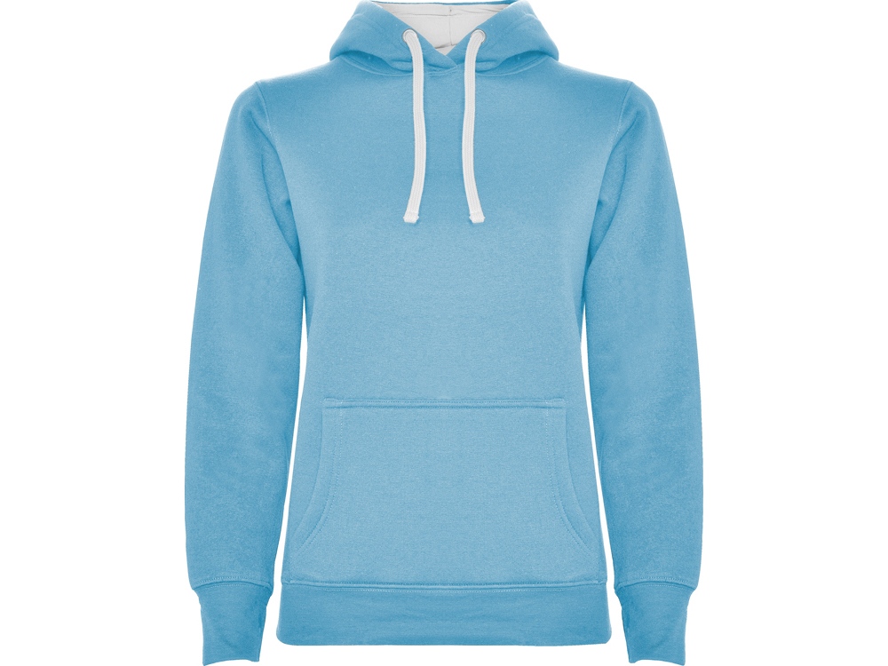 Худи с капюшоном и шнурками. Отделка горловины спинки внутри тесьмой, Риб 1х1 по низу изделия и манжетам. Карман кенгуру. На манжетах вырез под большой палец На части цветомоделей подкладка капюшона и шнурки контрастного цвета.