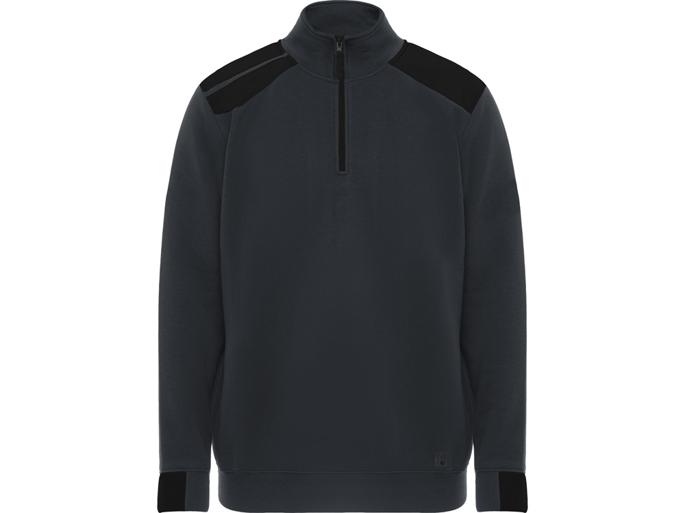 Толстовка с воротом- стойкой на молнии с сочетанием двух цветом. Половина манжет и низ изделия из рибового полотна 1х1. Укрепляющая отстрочка по внутреннему воротнику. Контрастные плечи , детали, молния и манжеты