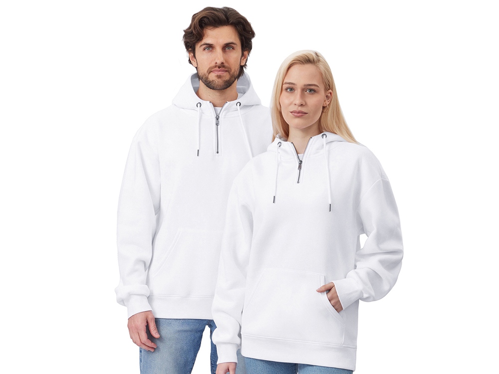 Худи с капюшоном ворот на молнии. Шнур в капюшоне с металлическими наконечниками. Отделка горловины спинки внутри тесьмой, Риб 2х2 по низу изделия и манжетам. Удобный карман кенгуру. Трафаретная печать (1 цвет (белые изделия)) на данный товар осуществляется бесплатно. Оплачивается только настройка оборудования в размере 7300 рублей на весь тираж.