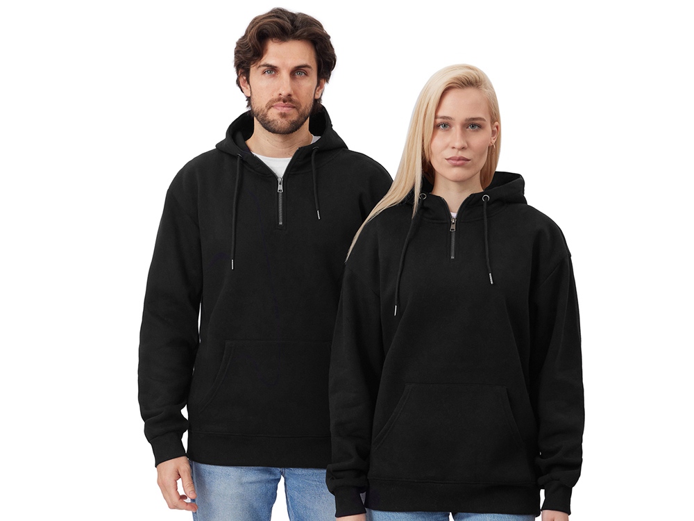 Худи с капюшоном ворот на молнии. Шнур в капюшоне с металлическими наконечниками. Отделка горловины спинки внутри тесьмой, Риб 2х2 по низу изделия и манжетам. Удобный карман кенгуру. Трафаретная печать (1 цвет (цветные изделия)) на данный товар осуществляется бесплатно. Оплачивается только настройка оборудования в размере 9100 рублей на весь тираж.