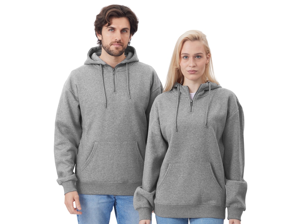 Худи с капюшоном ворот на молнии. Шнур в капюшоне с металлическими наконечниками. Отделка горловины спинки внутри тесьмой, Риб 2х2 по низу изделия и манжетам. Удобный карман кенгуру. Трафаретная печать (1 цвет (цветные изделия)) на данный товар осуществляется бесплатно. Оплачивается только настройка оборудования в размере 9100 рублей на весь тираж.
