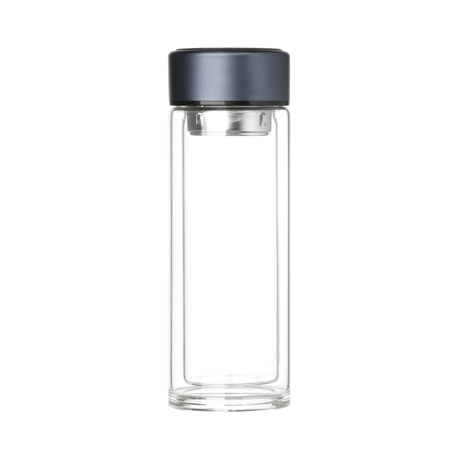 Стеклянная бутылка с двойными стенками позволит носить свежезаваренный чай с собой. Ситечко позволит заварить чай прямо в бутылке.