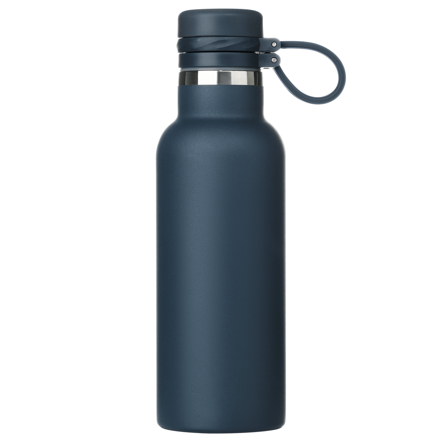 Вакуумная герметичная конструкция выполнена из двухслойной высоколегированной стали 304 марки, что делает конструкцию более прочной и устойчивой к мелким сколам и царапинам. Крышка из высококачественного пластика, оснащена удобной силиконовой петелькой для переноски. Бутылку можно переворачивать и класть в сумку.