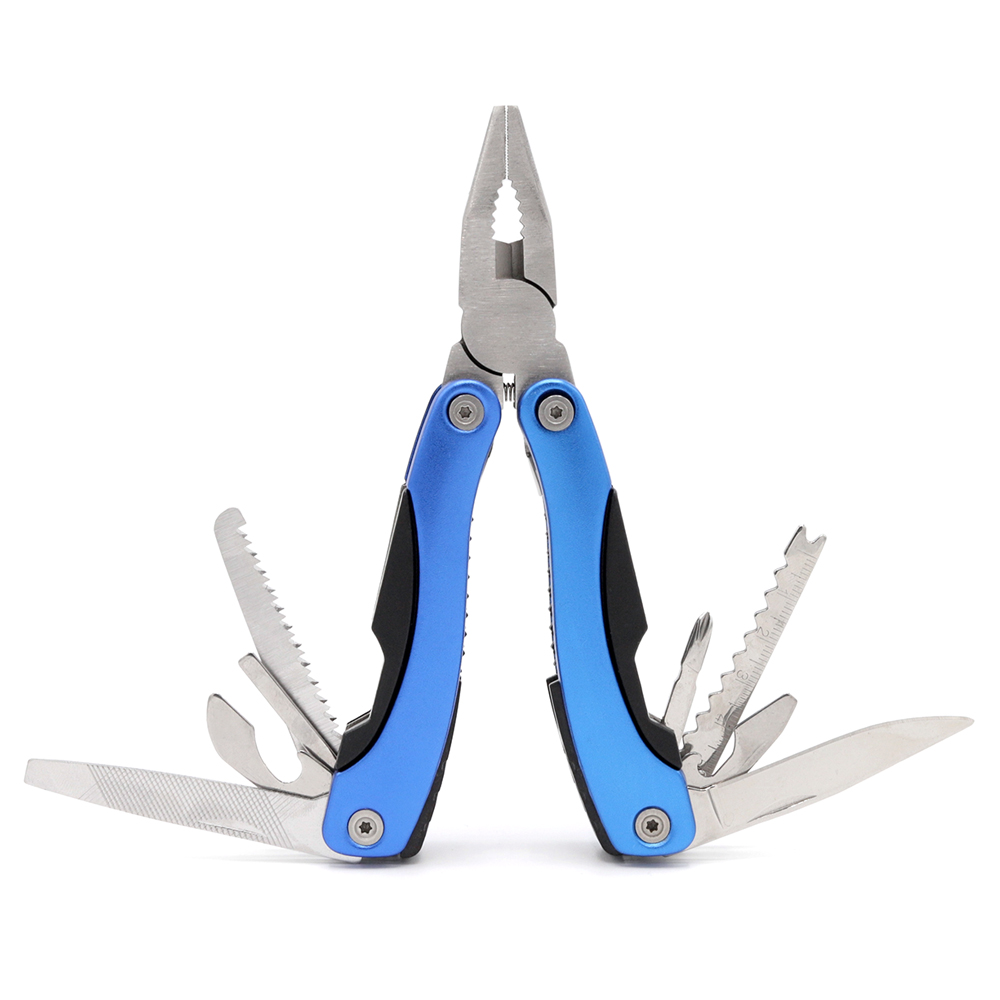 - Функции: Плоскогубцы, Кусачки, Консервный нож, Открывалка для бутылок, Средняя и маленькая плоские отвертки, Крестовая отвертка, Гладкое лезвие, Зубчатое лезвие, Пила, Напильник