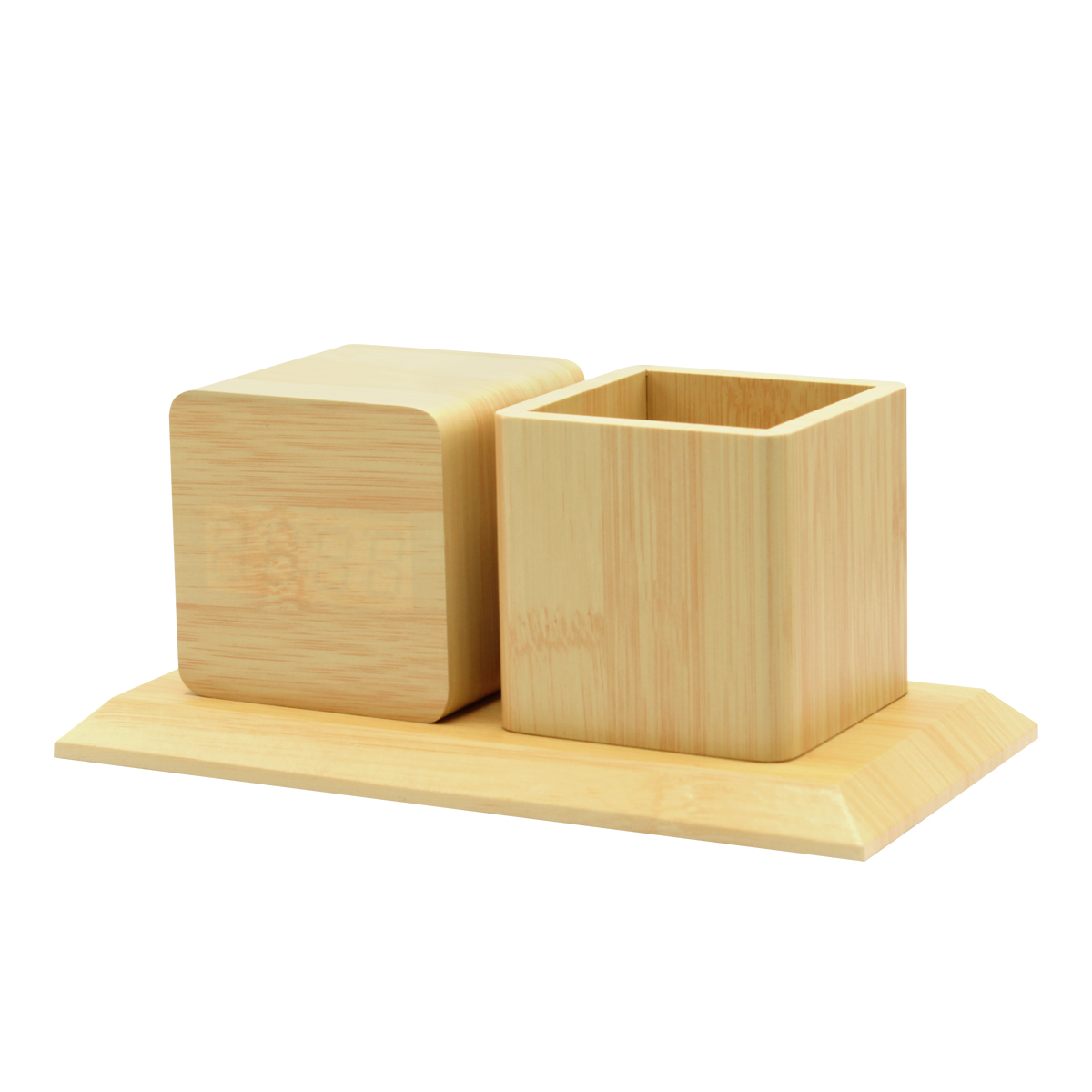 Многофункциональные деревянные часы с белой подсветкой и подставкой под канцелярские принадлежности. Функции: часы, дата, температура, 3 режима будильника, функция управления звуком (когда функция управления звуком активирована, дисплей гаснет через 15 секунд; вы можете активировать, дисплей хлопнув в ладоши, или слегка постучав по часам). В промежуток времени 18.00-7.00 яркость подстветски снижается на 50%. Источник питания: от сети, либо с использованием 3х батареек ААА (не входят в комплект). Поставляются вместе с русскоязычной инструкцией и USB кабелем для подключения к сети. Батарейки в комплект не входят.