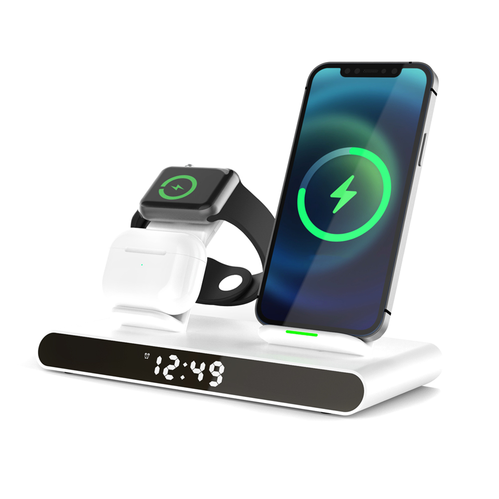 Часы электронные Abbatt мультифункциональные с беспроводной зарядкой. Особенность этих электронных часов заключается в том, что они выполянют функцию не только часов и будильника, а еще с их помощью можно заряжать свои гаджеты. Удобство беспроводной зарядки говорит само за себя - очень комфортно заряжать смартфон, часы и наушники, просто положив их на зарядную станцию, не подключая при этом к ним никаких кабелей. Также есть возможность быстрой зарядки Qi. При беспроводной зарядке устройство меньше подвержено перепадам в сети, чем при подключении к розетке, тем самым увеличивается срок службы аккумулятора. Благодаря интерфейсу Type-C (шнур идёт в комплекте 1м) ваши гаджеты будут заряжаться более эффективно, а главное - одновременно. Вы можете смотреть фильмы, слушать музыку, звонить или отправлять сообщения во время всего процесса зарядки. Входы: 9V/2A 12/2A. Выходы: Беспроводной 10W / 7.5W / 5W / USB 5V / 0.8-1A / Airpod 3W / Apple watch 2.5W. Совместимость с Apple 8 и выше. Размер в упаковке: 21,5*13,5*5,5 см. Поддерживаемые устройства: 1) Область зарядки смартфона поддерживает все Android/Ios устройства с функцией беспроводной зарядки. 2) Область зарядки наушников поддерживает все Android/Ios устройства с функцией беспроводной зарядки. 3) Область зарядки часов поддерживает только устройства AppleWatch Для работы беспроводной зарядки необходимо подключать устройство к сети через адаптер.