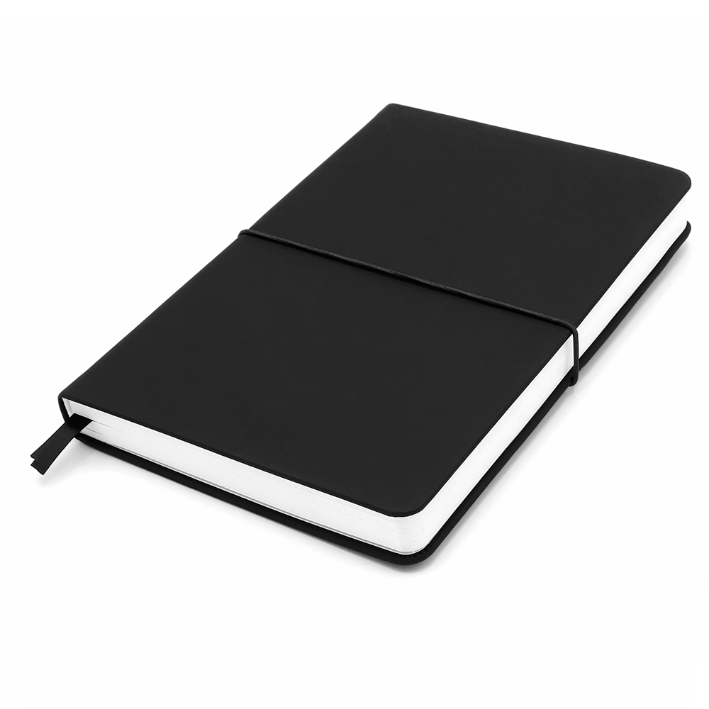 Блокнот А5-формата жёсткой обложке со специальным гладким покрытием. Материал обложки — полиуретан. Карман в нахзаце, форзац, двойное ляссе, эластичная застёжка — всё комплиментарно цвету обложки. Размеры: 150*214*24 мм, 384 разлинеенные страницы / 192 листа, бумага плотностью 70г/м2. В кармане можно переносить визитки, купоны и т.д.