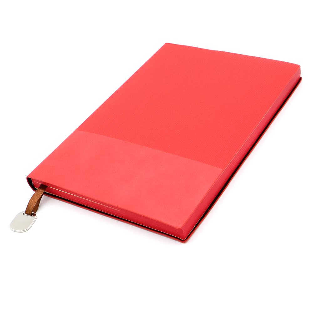 Блокнот формата А5 в гибкой обложке из искусственной кожи. Материал обложки — термополиуретан. Текстура — сверху на 2/3 ребристая, на треть снизу — гладкая для нанесения вашего логотипа. Размеры: 210*145 мм, 240 страниц / 120 листов, страницы разлинеенные, бумага плотностью 80 г/м2. Срез страниц прокрашен в цвет обложки блокнота. В аксессуарах представлены: ляссе c металлической биркой. На бирку можно заказать нанесение логотипа вашей компании.