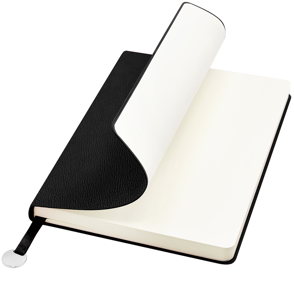 Блокнот формата А5 в гибкой обложке из искусственной кожи. Материал обложки — полиуретан. Ляссе и каптал блокнота соответствует цвету обложки. На конце ляссе присутствует металлический жетон, куда можно заказать гравировку логотипа организации. Размеры: 210*147*13 мм, 256 страниц / 128 листов, страницы в линейку, плотность бумаги — 70г/м2.
