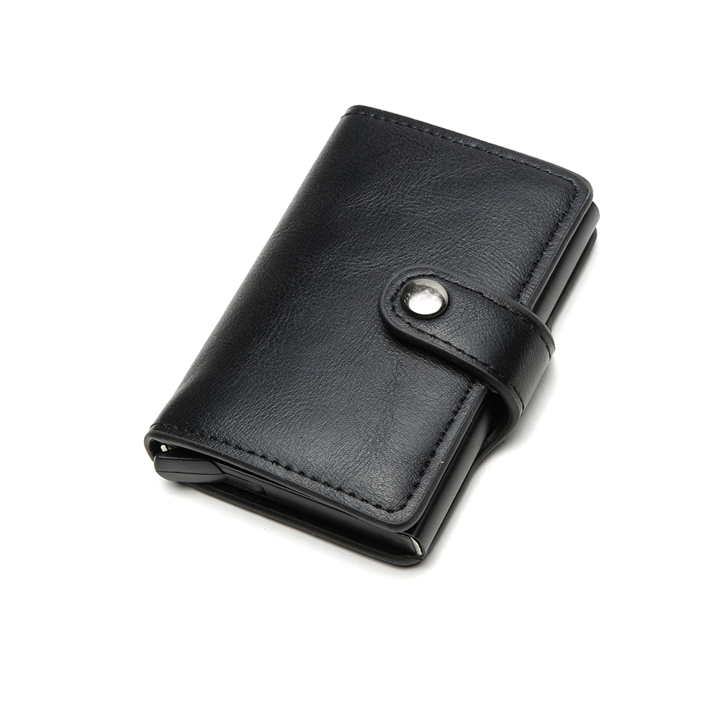 Солидный практичный держатель для банковских карт Bakara с покрытием из экокожи книжного типа и возможностью закрывать, а также функцией RFID, чтобы защитить карты он несанкционированного копирования. Имеет нижнюю кнопку для быстрого извлечения карт. Может вместить 6 карт, информация носит справочный характер, поскольку количество вмещаемых карт зависит от их толщины.