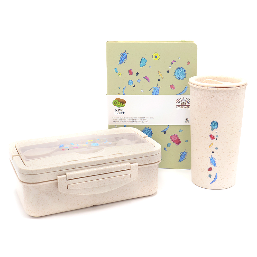 "ВТОРОЕ ДЫХАНИЕ" — это подборка функциональных товаров, созданных с заботой о природе и повседневном комфорте. Каждый элемент — это шаг к более осознанному потреблению: переработанные материалы, минималистичный дизайн, практичность без лишнего. Состав набора: 1. Ланчбокс (контейнер для еды) Hapler из пшеничного волокна, бежевый (артикул 13007.13) - 1 шт. 2. Термостакан с двойной стенкой Flathat из пшеничного волокна, бежевый (артикул 5060.13) - 1 шт. 3. Блокнот из растительного сырья Tutti Frutti в твёрдом переплёте, киви (артикул 51012.04) - 1 шт.