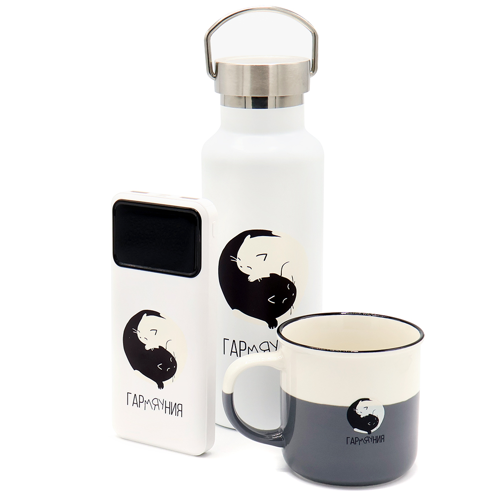 Без кота и жизнь не та. Все знают эту поговорку, и сложно с ней не согласится. Общение с шерстяными комочками имеет терапевтический эффект, это доказано исследованиями. Владельцы кошачьих реже страдают депрессией, у них ниже уровень тревожности, лучше сон и, как ни странно, выше самооценка. В общем, полная гарМЯУния. Состав набора: 1. Кружка Wooster, бело-серая ( артикул 6144.20 ) 2. Внешний аккумулятор Cypher 10000 Mah, белый ( артикул 2042.01) 3. Термобутылка Sakura, белый ( артикул 5064.01)