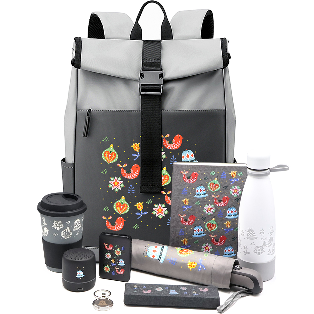 Пусть в каждый зимний день будет немного магии! "ВОЛШЕБНАЯ СКАЗКА" — это праздничная атмосфера в стильной упаковке: радость, тепло и приятные эмоции, которые хочется разделить. Отличный выбор для новогодних поздравлений и корпоративных подарков. Состав набора: 1. Рюкзак Alvort, серый (артикул - 4037.10 ) - 1 шт. 2. Блокнот A5 Officer в мягком переплёте с металлической биркой, серый (артикул - 51010.10 ) - 1 шт. 3. Термобутылка герметичная вакуумная Olivia, белый (артикул - 5050.01 ) - 1 шт. 4. Кольцо-держатель силиконовое для термобутылки Olivia, серый (артикул - 5050K.10 ) - 1 шт. 5. Манжета силиконовая для термобутылки Olivia, серый (артикул - 5050M.10 ) - 1 шт. 6. Внешний аккумулятор Fluffy, 5000 Mah, черный (артикул - 2041.02 ) - 1 шт. 7. Автоматический противоштормовой зонт Dakota, тёмно-серый (артикул - 8017.20 ) - 1 шт. 8. Беспроводная Bluetooth колонка Bardo, черный (артикул - 11016.02 ) - 1 шт. 9. Брелок Ронда металлический, серебристый (артикул - 12004.09 ) - 1 шт. 10. Ручка металлическая Espada софт-тач, серый цемент (артикул - 1053.10 ) - 1 шт. 11. Коробка для ручки Collin, чёрный (артикул - 1071.02 ) - 1 шт. 12. Кружка керамическая Magic, софт-тач, серый (артикул - 6134.10 ) - 1 шт. 13. Крышка силиконовая для кружки Magic, черный (артикул - 6134K.02 ) - 1 шт. 14. Манжета силиконовая для кружки Magic, черный (артикул - 6134M.02 ) - 1 шт.