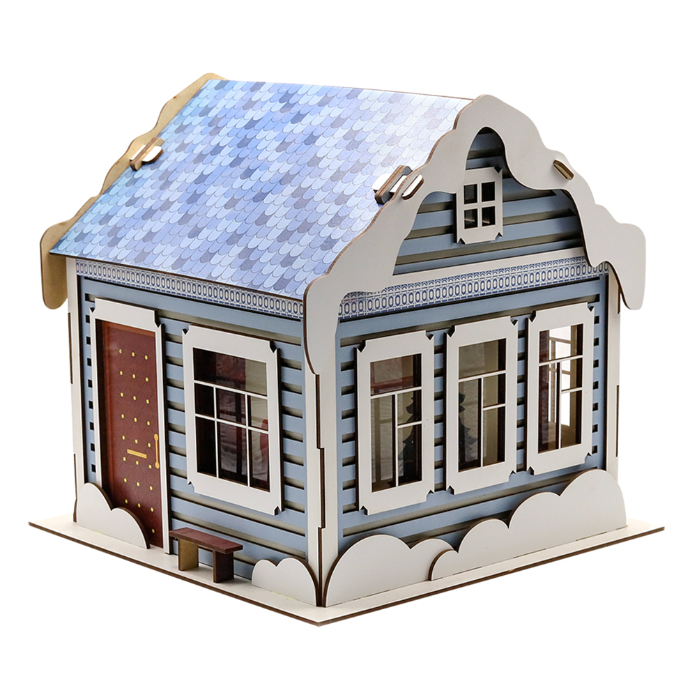 Новогодняя упаковка "Новогодний дом" — это деревянная коробка голубого полуматового цвета, выполненная в форме уютного зимнего домика. Её праздничный дизайн и мягкий цвет создают атмосферу тепла и волшебства, идеально подходя для хранения подарков или сладостей. Элегантное оформление добавляет уют и праздничное настроение в новогодние праздники.