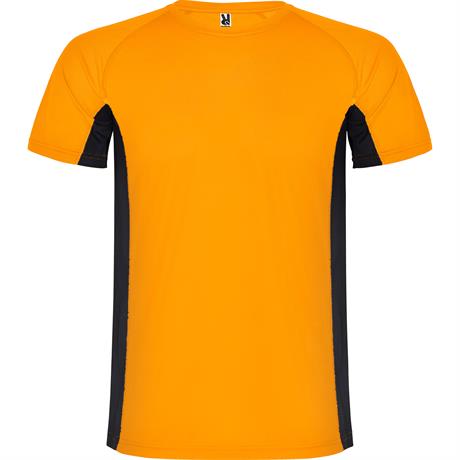 Спортивная футболка с короткими рукавами реглан, изготовленная из двух комбинированных тканей из полиэстера. Основная ткань — ткань bird's eye, а боковые вставки и рукав с внутренней стороны — с микроперфорированной ткани. Круглая горловина с усиленными