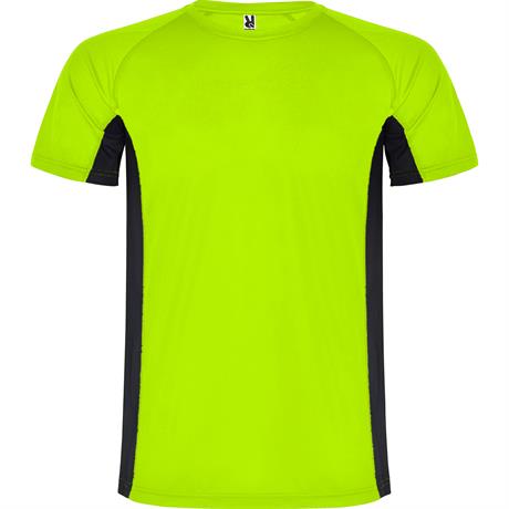 Спортивная футболка с короткими рукавами реглан, изготовленная из двух комбинированных тканей из полиэстера. Основная ткань — ткань bird's eye, а боковые вставки и рукав с внутренней стороны — с микроперфорированной ткани. Круглая горловина с усиленными