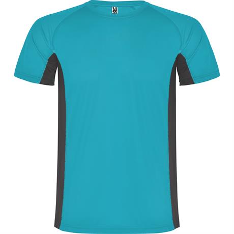 Спортивная футболка с короткими рукавами реглан, изготовленная из двух комбинированных тканей из полиэстера. Основная ткань — ткань bird's eye, а боковые вставки и рукав с внутренней стороны — с микроперфорированной ткани. Круглая горловина с усиленными