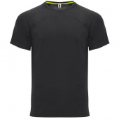 Спортивная футболка унисекс с короткими рукавами. 1. Круглая горловина с усиленными закрытыми швами контрастного неоново-желтого цвета. 2. Сочетание двух тканей из полиэстера на спине. Быстросохнущая дышащая модель. *Съемная этикетка. *Техническая тка