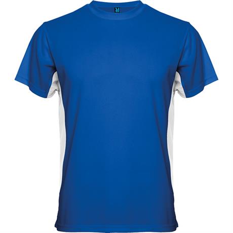 Двухцветная Спортивная футболка с короткими рукавами. 1. Круглая горловина с закрытыми швами. 2. Контрастные боковые швы. *Дышащий материал, легко стирается и быстро сохнет. *Съемная этикетка. *Техническая ткань.