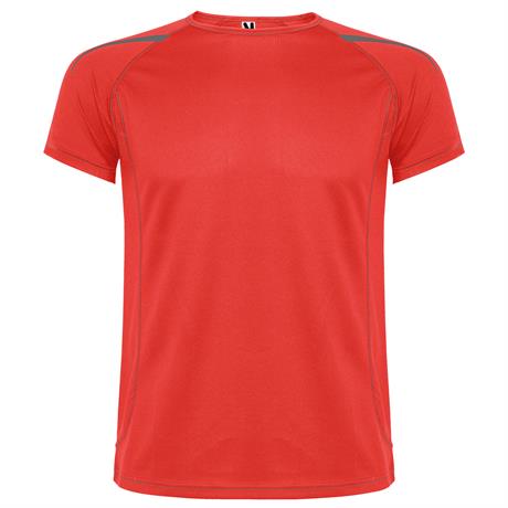 Спортивная футболка из одинарного трикотажа с короткими рукавами реглан. 1. Контрастные швы на манжетах рукавов, внизу, горловине и боках. 2. Горловина с окантовкой из той же ткани. 3. Дышащая ткань, легко стирается и быстро сохнет. 4. Светоотражающие де